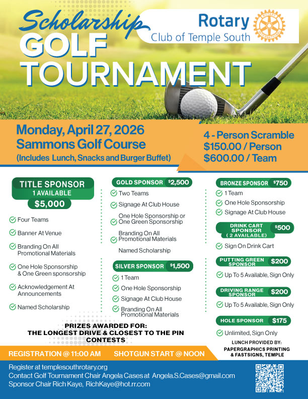 If you are interested in becoming a member of the Rotary Club of Temple South, click the Become a Member button below to download the application and email a completed copy to Glennis Lamm.